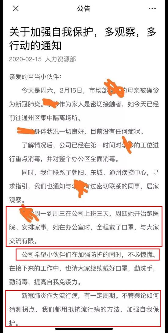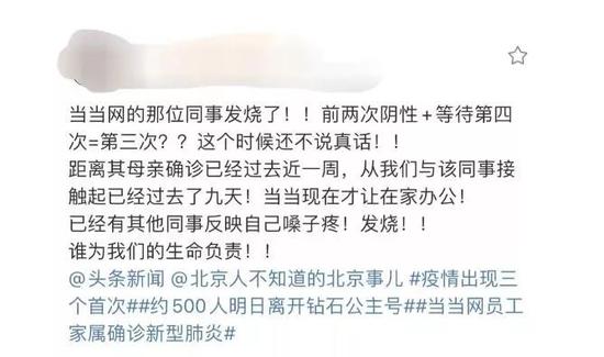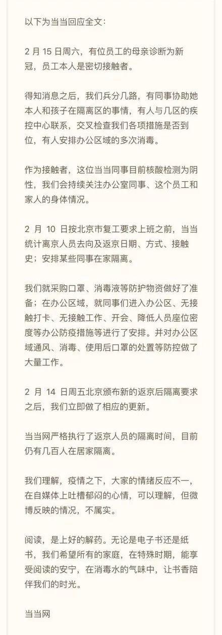 当当一名员工母亲被确诊新冠肺炎