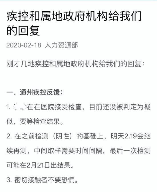 18日,当当网还发给员工发了一则疾控和属地政府机构的回复通知,回复表示: